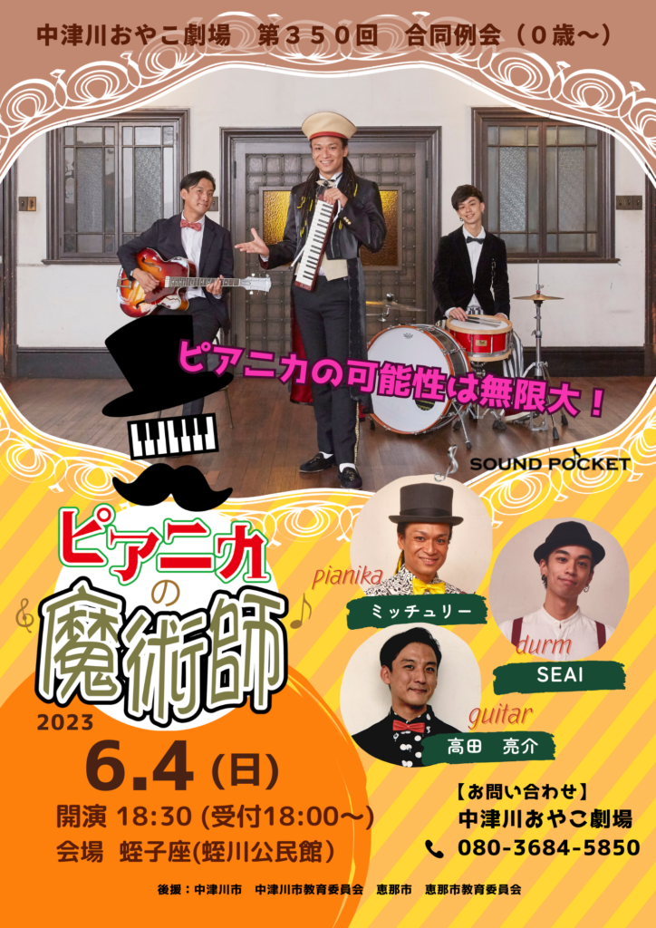 【岐阜】6/4(日)中津川おやこ劇場主催「ピアニカの魔術師コンサート」