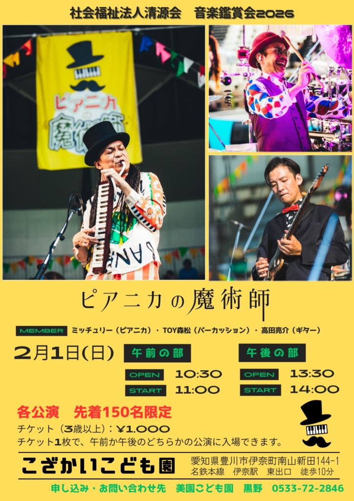 【愛知】2/1(日)社会福祉法人清源会 音楽鑑賞会2026 「ピアニカの魔術師コンサート」