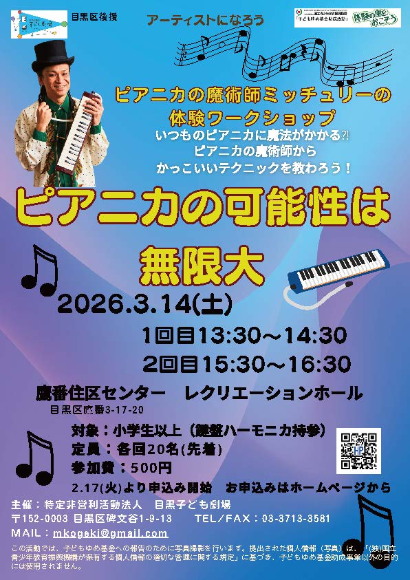 【東京】3/14(土)目黒子ども劇場「体験ワークショップ」