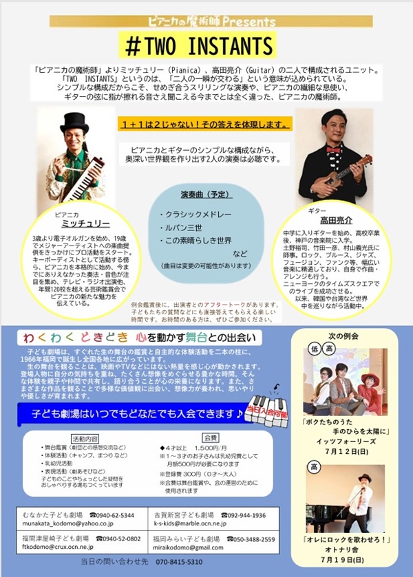 【福岡】5/23(土)むなかた・福間津屋崎・古賀新宮・福岡みらい子ども劇場合同「#TWO INSTANTS」コンサート
