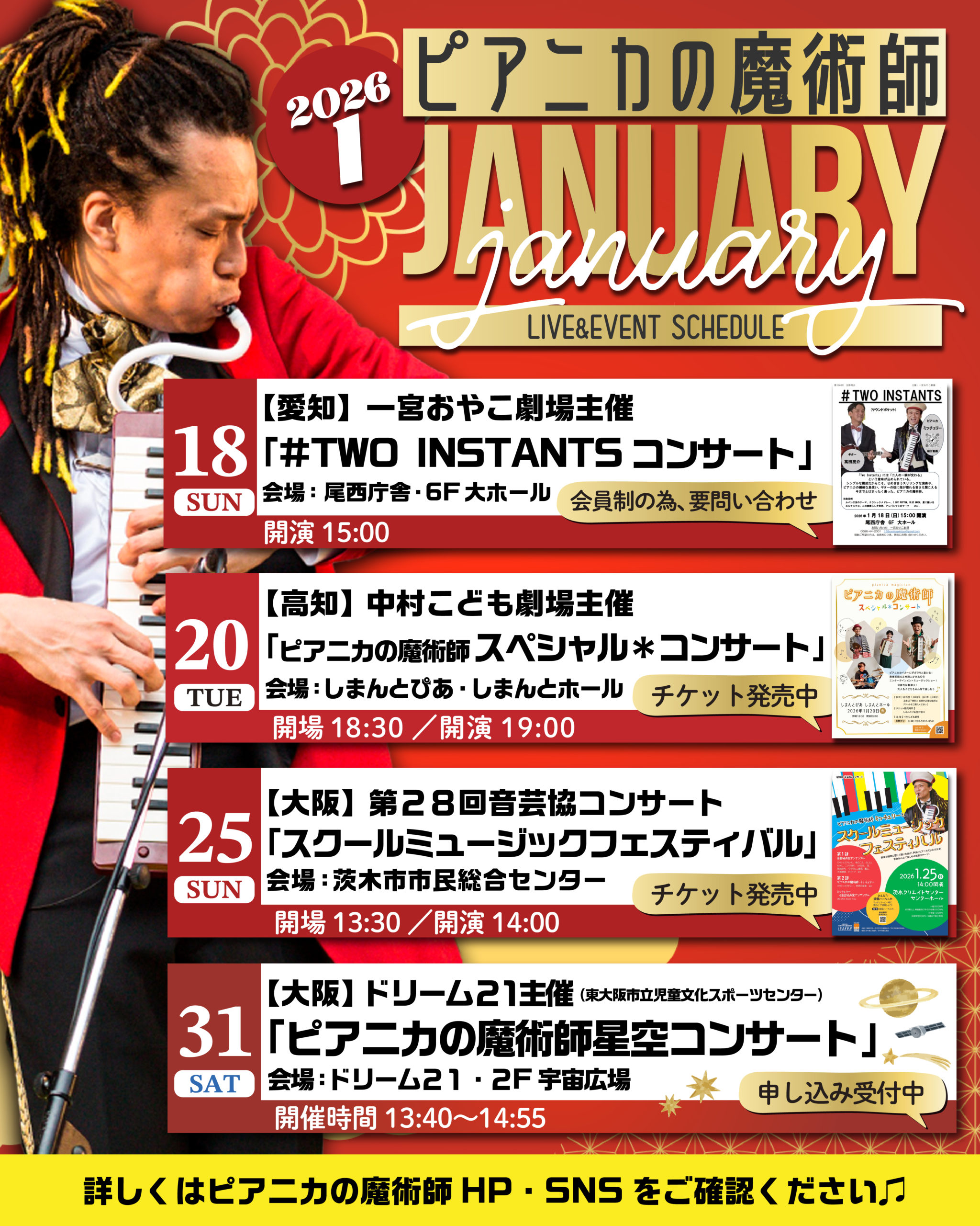 【高知】1/20(火)中村こども劇場主催「ピアニカの魔術師スペシャル*コンサート」