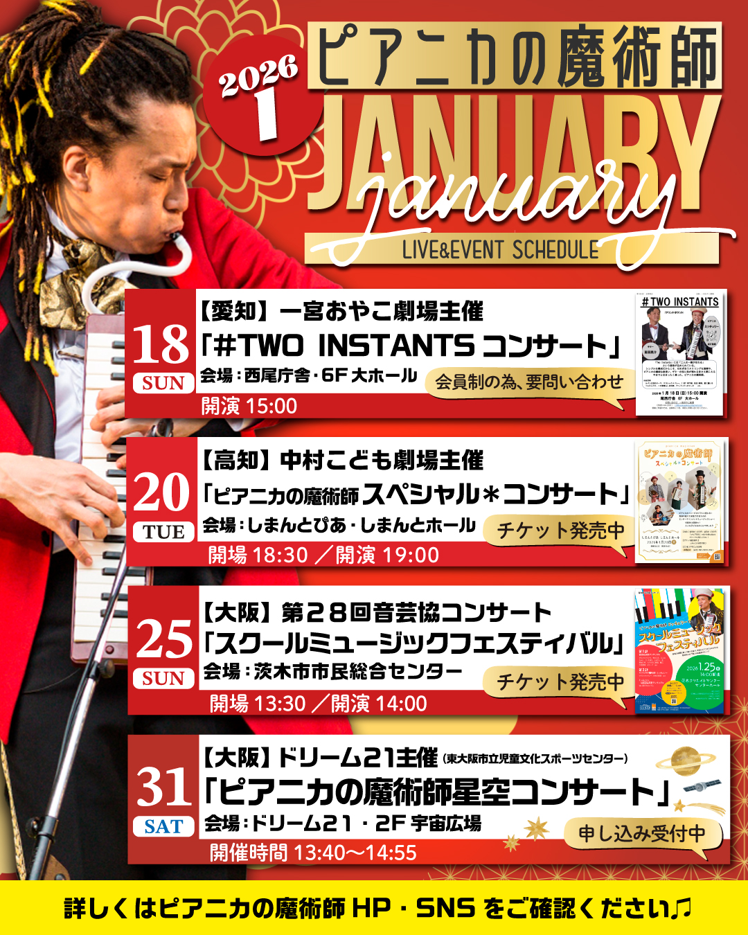 【大阪】1/31(土)「ピアニカの魔術師星空コンサート」